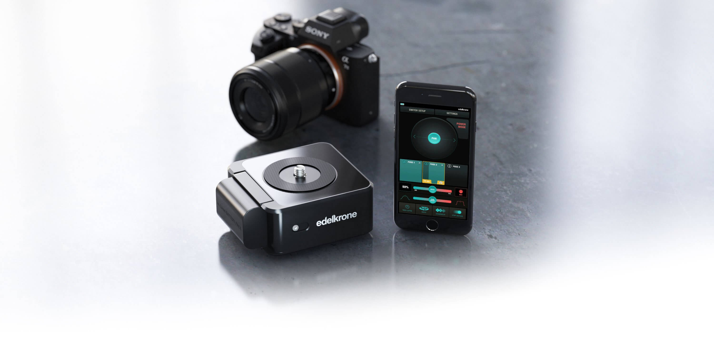 Verbindet sich drahtlos mit edelkrone Sliders & Jibs