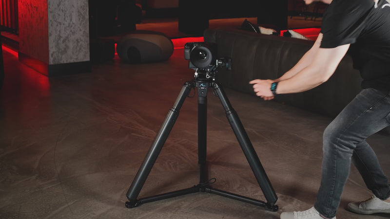 Haftungsausschluss: Tripod X ist nicht als Bewegungssteuerungsgerät zur Steuerung der Kamerabewegungen während der Aufnahme konzipiert. Wie jedes andere Stativ ist es ausschließlich als Hilfsmittel konzipiert, um Ihre Kamera vor der Aufnahme ausgewogen auf der gewünschten Höhe zu positionieren. Der einzige Zweck der Motoren besteht darin, die Höheneinstellung und Nivellierung mühelos zu ermöglichen.