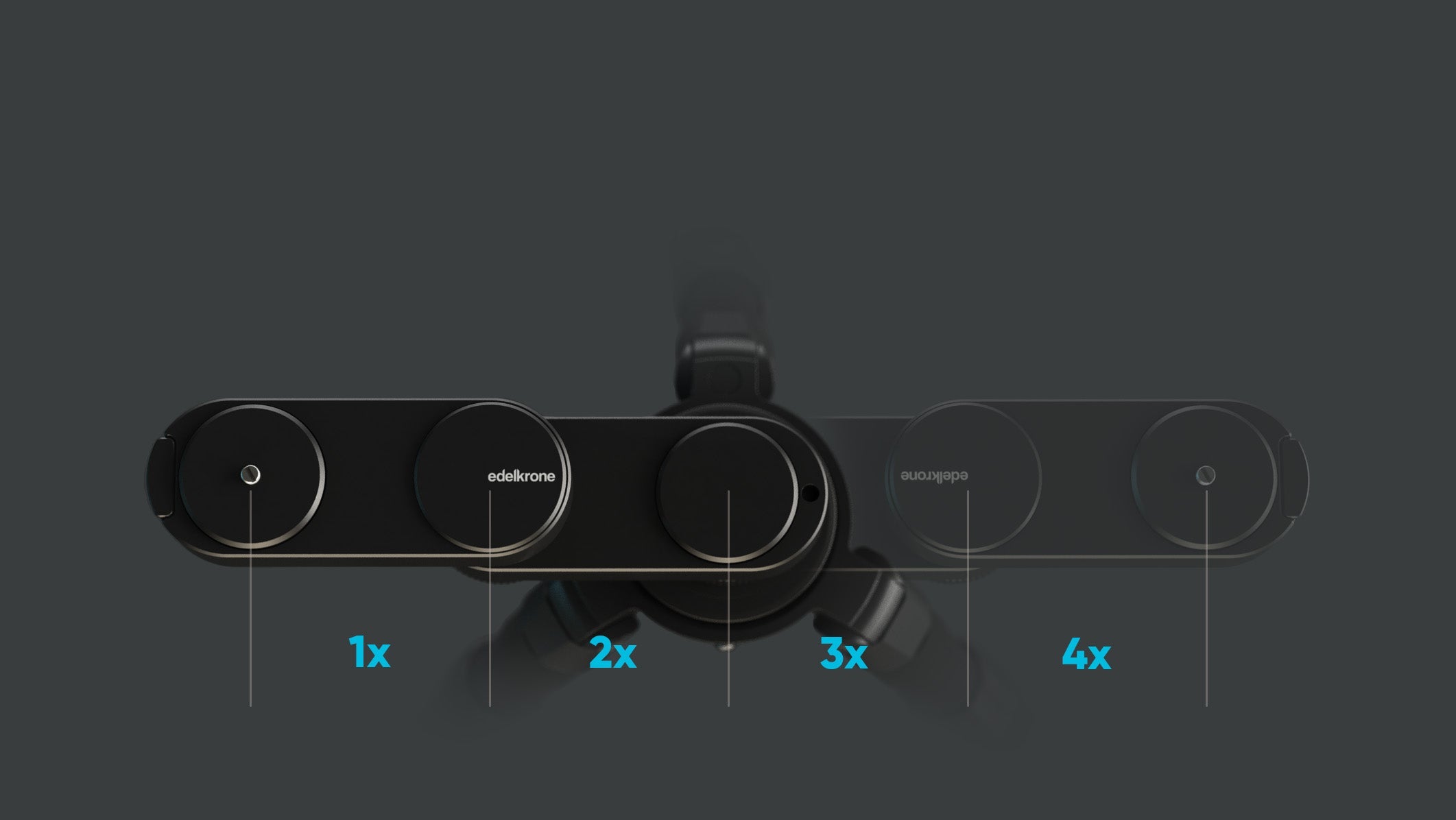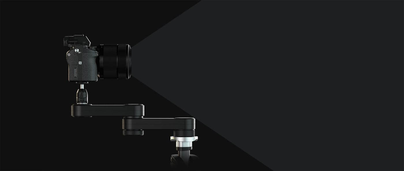 Schienenloser tragbarer Slider, der der Kamera eine viermal größere Bewegungsfreiheit lässt. Keine Batterien oder Ladegeräte erforderlich; eine vollständig mechanische Lösung dank des einzigartigen Doppelarmdesigns.